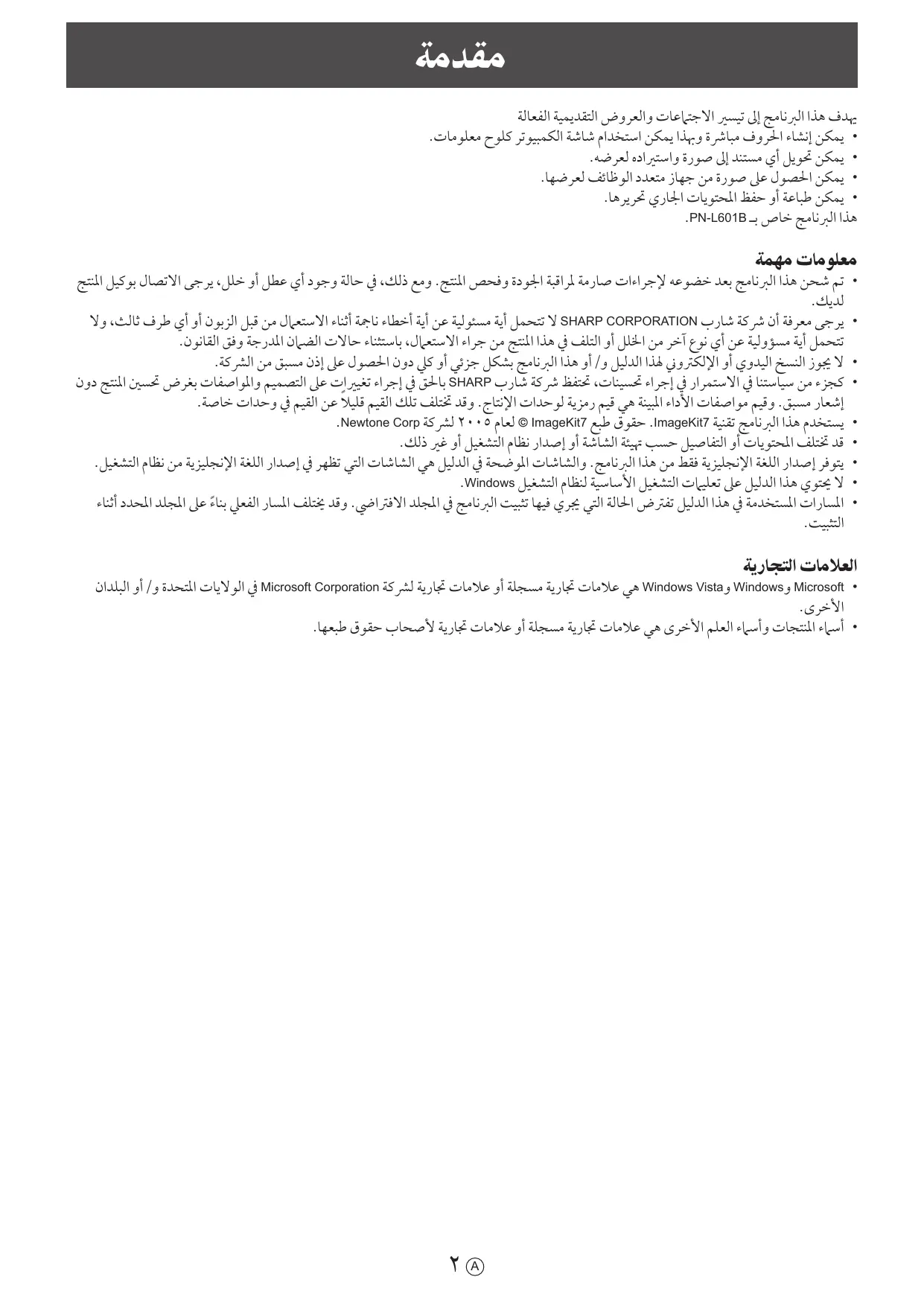 تنزيل التعليمات لجهازك شاشة تفاعلية بصيغة PDF مجاناً! ابحث عن دليلك PN-L601B - SHARP واستعد السيطرة على جهازك الإلكتروني. في هذه الصفحة منشورة جميع الوثائق اللازمة لاستخدام جهازك. PN-L601B لعلامة SHARP.