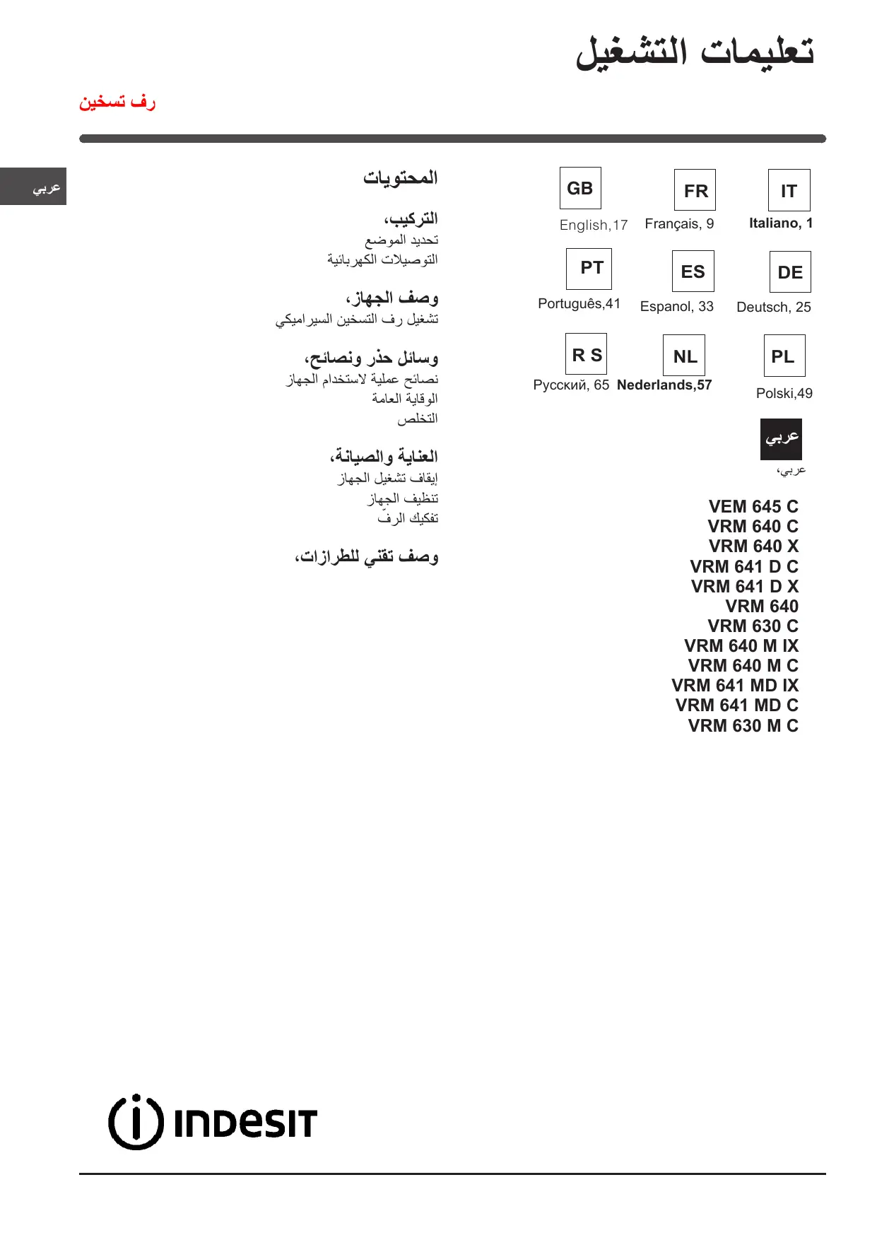 ابحث عن دليل الجهاز مجاناً VEM645C INDESIT بصيغة PDF.