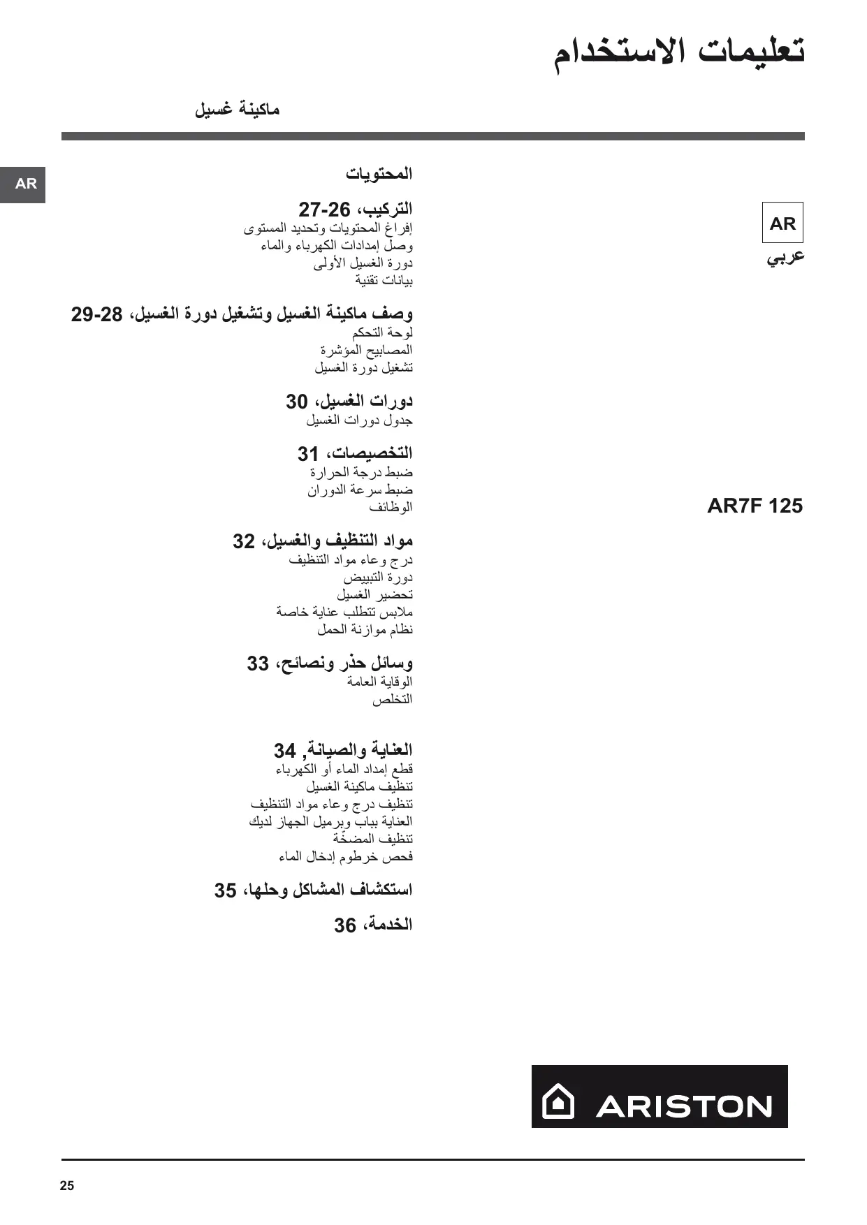 دليل المستخدم AR7F 125 EX HOTPOINT