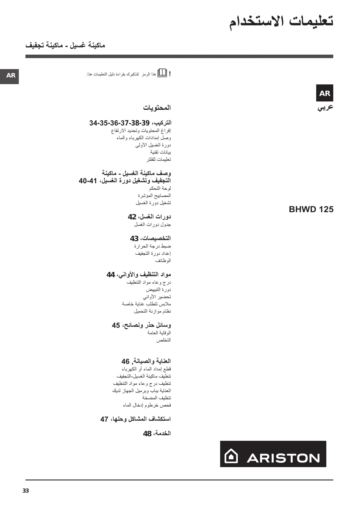 BHWD 125 GCC - غسالة مجفف HOTPOINT - دليل المستخدم المجاني
