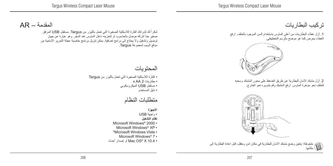 دليل المستخدم WIRELESS COMPACT LASER MOUSE TARGUS