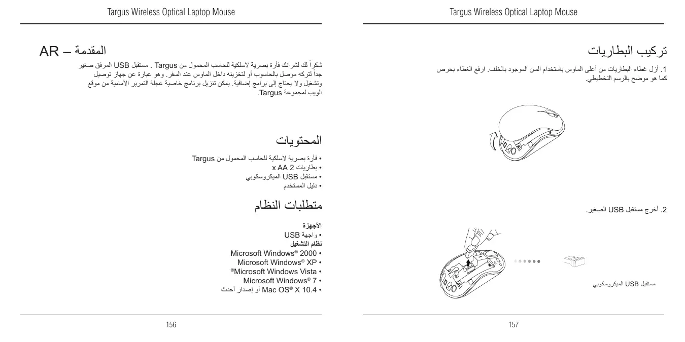 دليل المستخدم WIRELESS OPTICAL LAPTOP MOUSE TARGUS