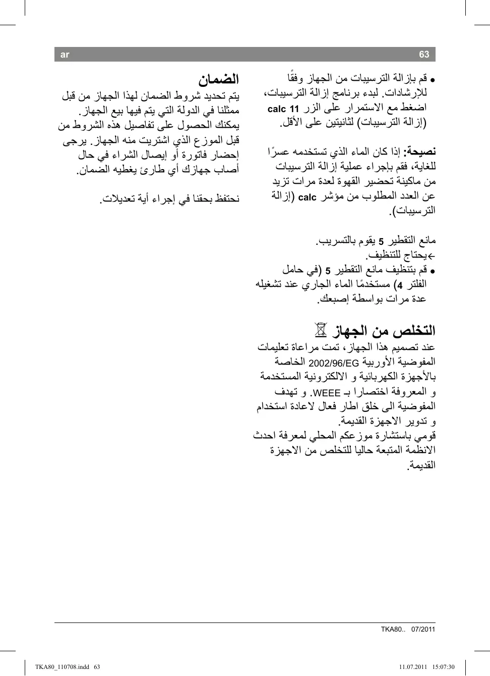 de ● Die Kaffeemaschine nach Anweisung entkalken. Zum Starten des Entkalkungsprogramms Taste 11 calc mindestens 2 Sekunden gedrückt halten. Tipp: Bei sehr kalkhaltigem Wasser das Gerät öfters entkalken als die Anzeige calc auffordert. Congratulations on purchasing this – Some water accumulation on the ilter holder 4 is normal; it does not indicate that the coffee machine is defective.
