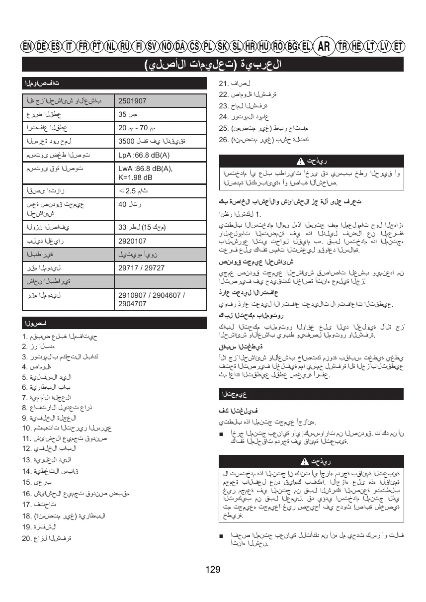 دليل المستخدم G40LM35 - G40LM35K2 - G40LM41 - G40LM45K4 - GD40LM45 - GD40LM46SP GREENWORKS