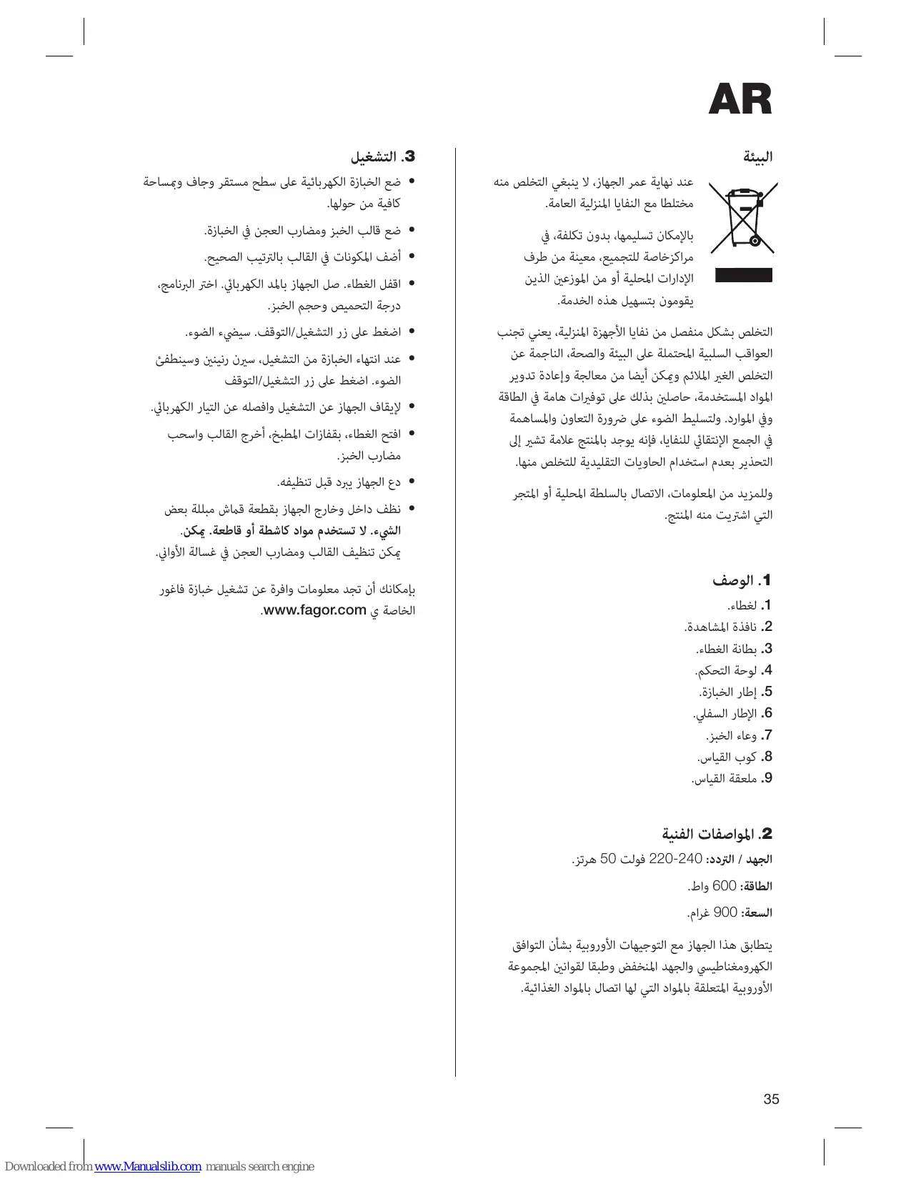 PAN-900 - FAGOR - دليل المستخدم المجاني