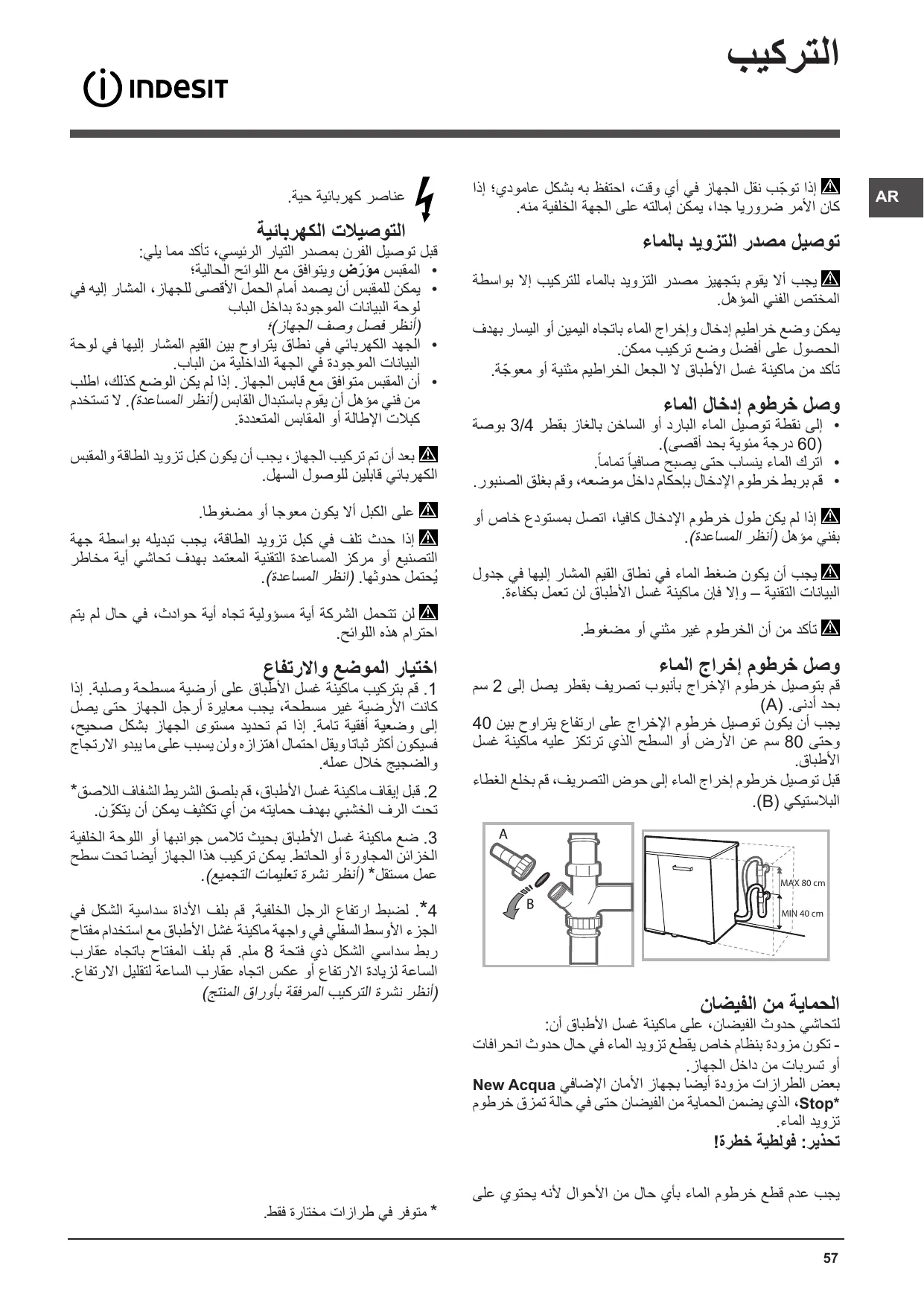 60°C). • Faire couler l'eau jusqu'à ce qu'elle soit limpide. 80 cm au-dessus du sol ou du plan d’appui du lave-vaisselle.
