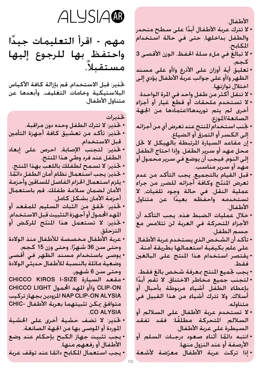 ابحث عن دليل الجهاز مجاناً ALYSIA I-SIZE CHICCO بصيغة PDF.