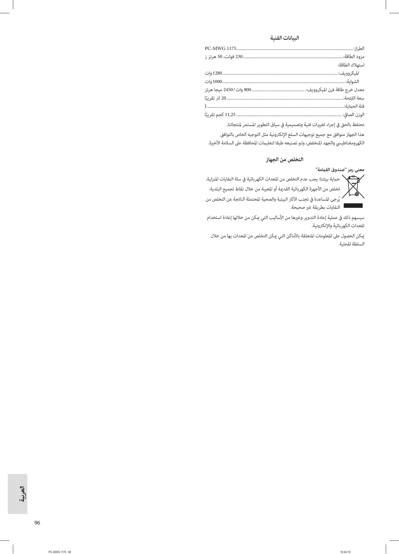 دليل المستخدم PC-MWG1175 PROFICOOK