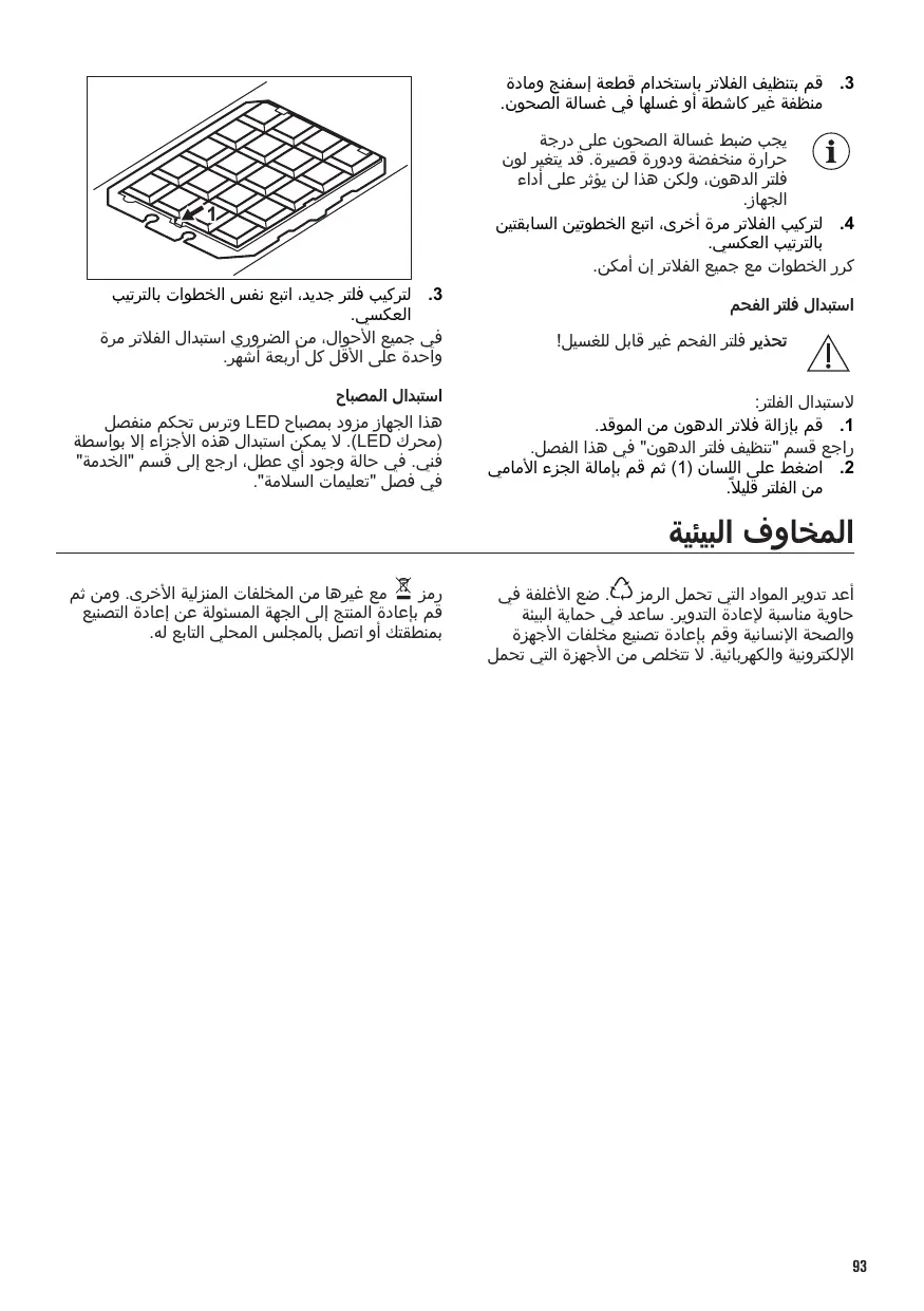Les filtres à graisse peuvent être lavés au lave-vaisselle.