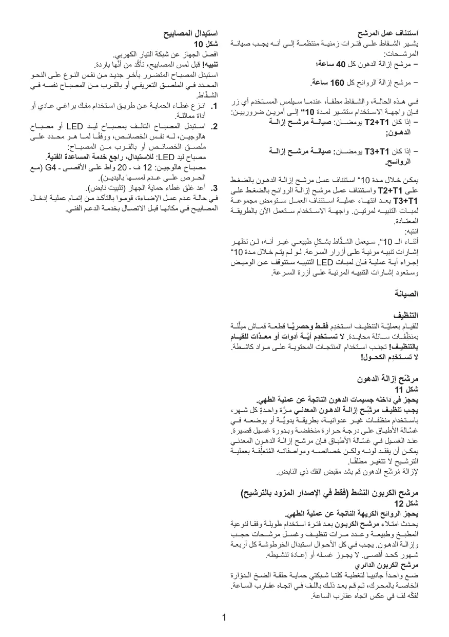 • L’air ne doit pas être envoyé dans un conduit utilisé pour évacuer les fumées d’appareils utilisant du gaz ou un autre combustible. • Ne pas utiliser ou laisser la hotte sans les lampes correctement montées, car un éventuel risque de choc électrique est possible. • N’utilisez jamais la hotte sans la grille montée correctement! • La hotte ne doit JAMAIS être utilisée comme une surface d'appui, sauf indication expresse.