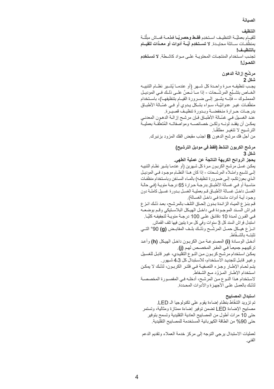 Le filtre à charbon peut être nettoyé tous les deux mois (ou lorsque le système d'indication de saturation des filtres – si prévu sur le réseau possédé – indique cette nécessité) avec de l'eau chaude et au moyen de détergents appropriés ou dans le lave-vaisselle à 65°C (dans le cas de lavage dans le lave-vaisselle suivre un cycle de lavage complet sans vaisselle à l'intérieur).