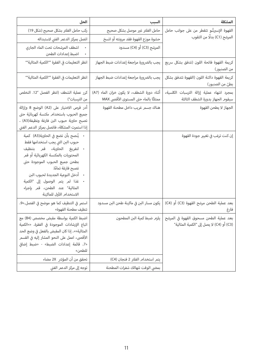 (C3) o (C4) está vacío obstruido cap. “9. Limpieza del molinillo” Después de la molienda, el polvo de café Es necesario regular la cantidad de café Regule la cantidad con el botón corresponen el filtro (C3) o (C4) no alcanza la “dosis molido diente (B4) siguiendo las indicaciones en perfecta” el apdo. “La “dosis perfecta””. Si el botón está ya en posición máx, proceda como se indica en la sección “7. Menú configuraciones” - “Regulación extra el grado de molienda” A10. Dispensador de café A11. Dispensador de água quente A12. Alojamento porta-filtro para moagem A13. Saída do moinho de café A14. Suporte chávenas pequenas A15. Grelha de apoio das chávenas pequenas de