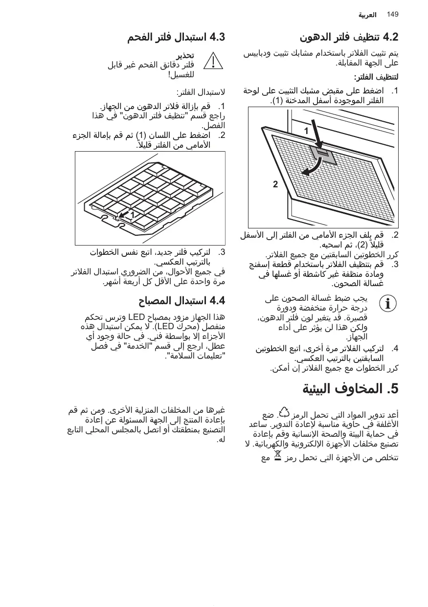Les filtres à graisse peuvent être lavés au lave-vaisselle.