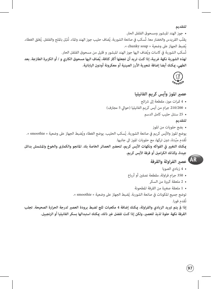 Placez tous les ingrédients dans l’appareil à soupe. Sélectionnez le programme « smoothie ».