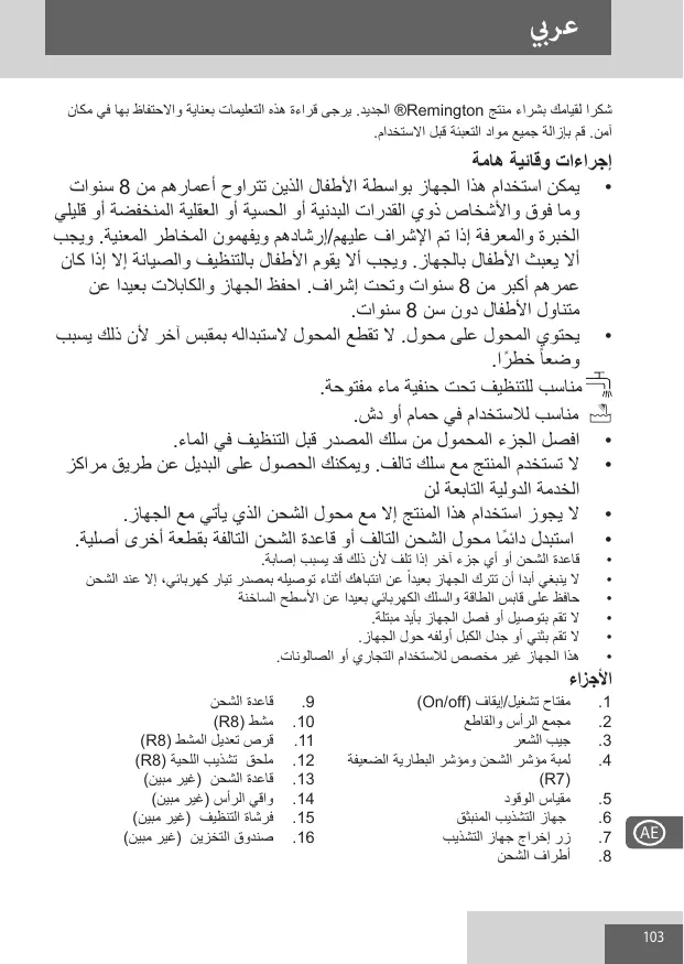 XR1500 - موس الحلاقة REMINGTON - دليل المستخدم المجاني