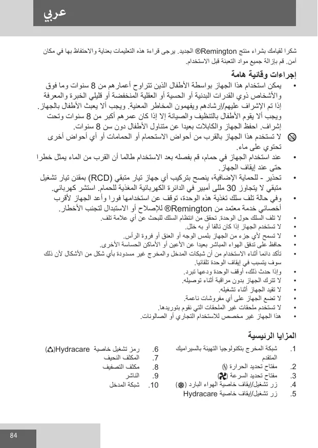 دليل المستخدم 59001HYDRALUXEPRO REMINGTON