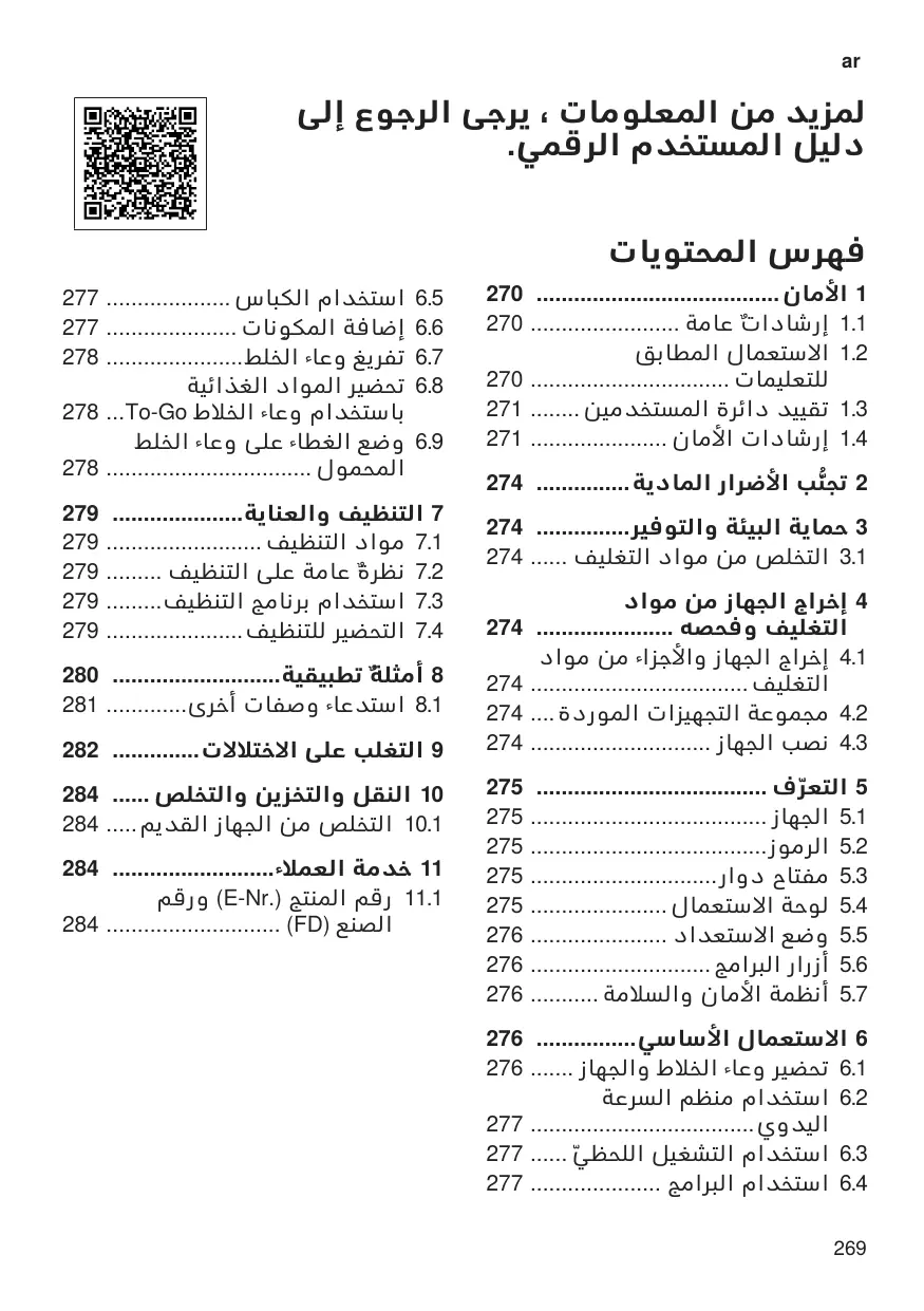 Table of contents 1 Safety 1.3 Restriction on user group This appliance can be used by persons with reduced physical, sensory or mental capabilities or a lack of experience and/or knowledge if they have been given supervision or instruction concerning use of the appliance in a safe way and if they understand the hazards involved. Do not let children play with the appliance. 4.1 Déballer l’appareil et ses composants 4.2 Contenu de la livraison 4.3 Installer l’appareil