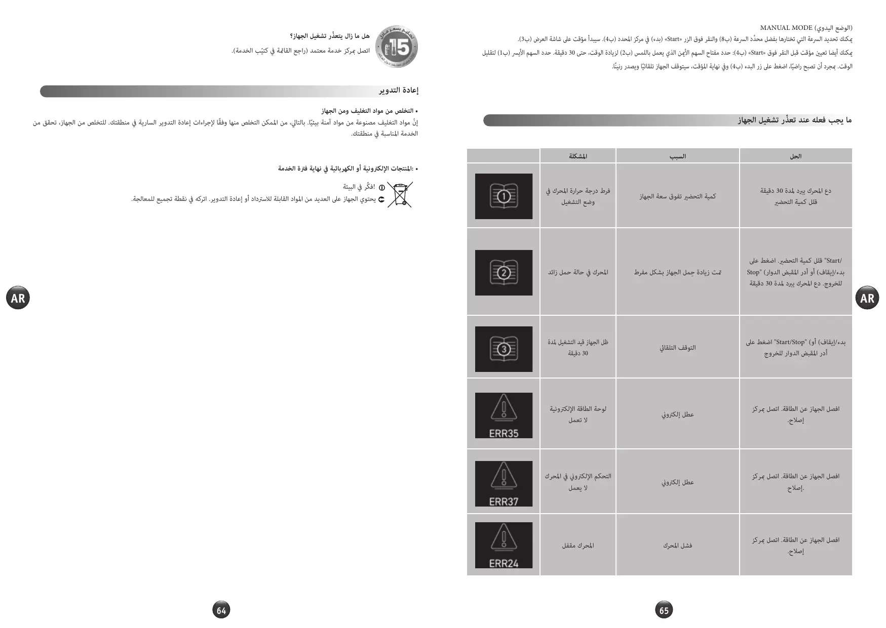 "Start/Stop" ou tourner le bouton rotatif pour effacer le message d'erreur. Laisser reposer votre appareil pendant 30 min.