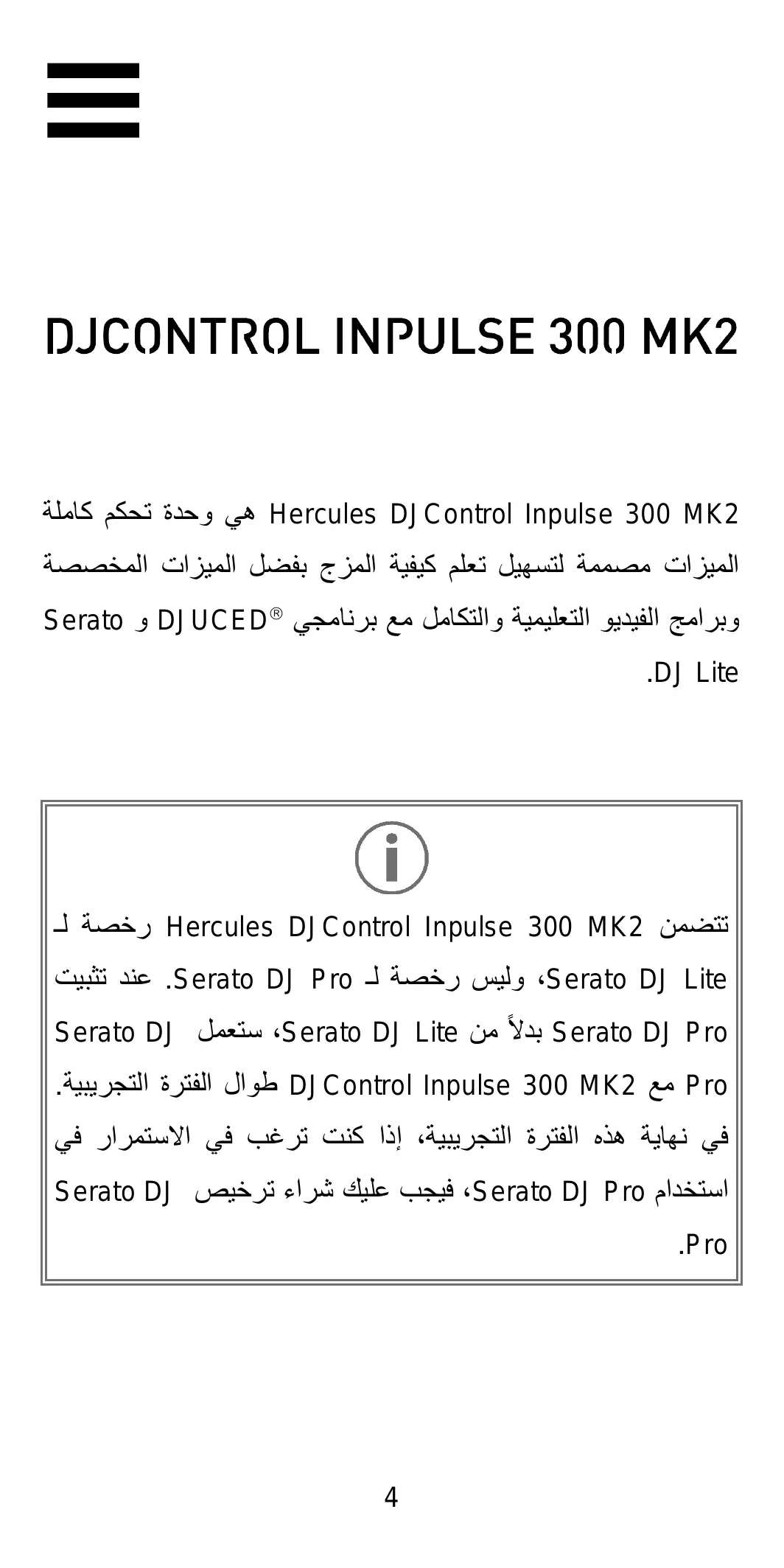 دليل المستخدم INPULSE 300 MK2 HERCULES