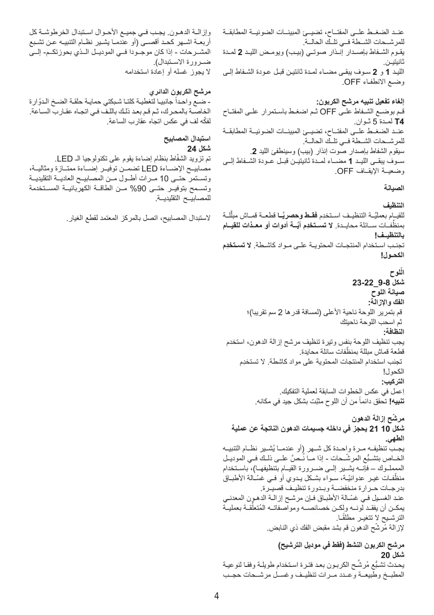 + La hotte ne doit JAMAIS être utilisée comme une surface d'appui, sauf indication expresse.