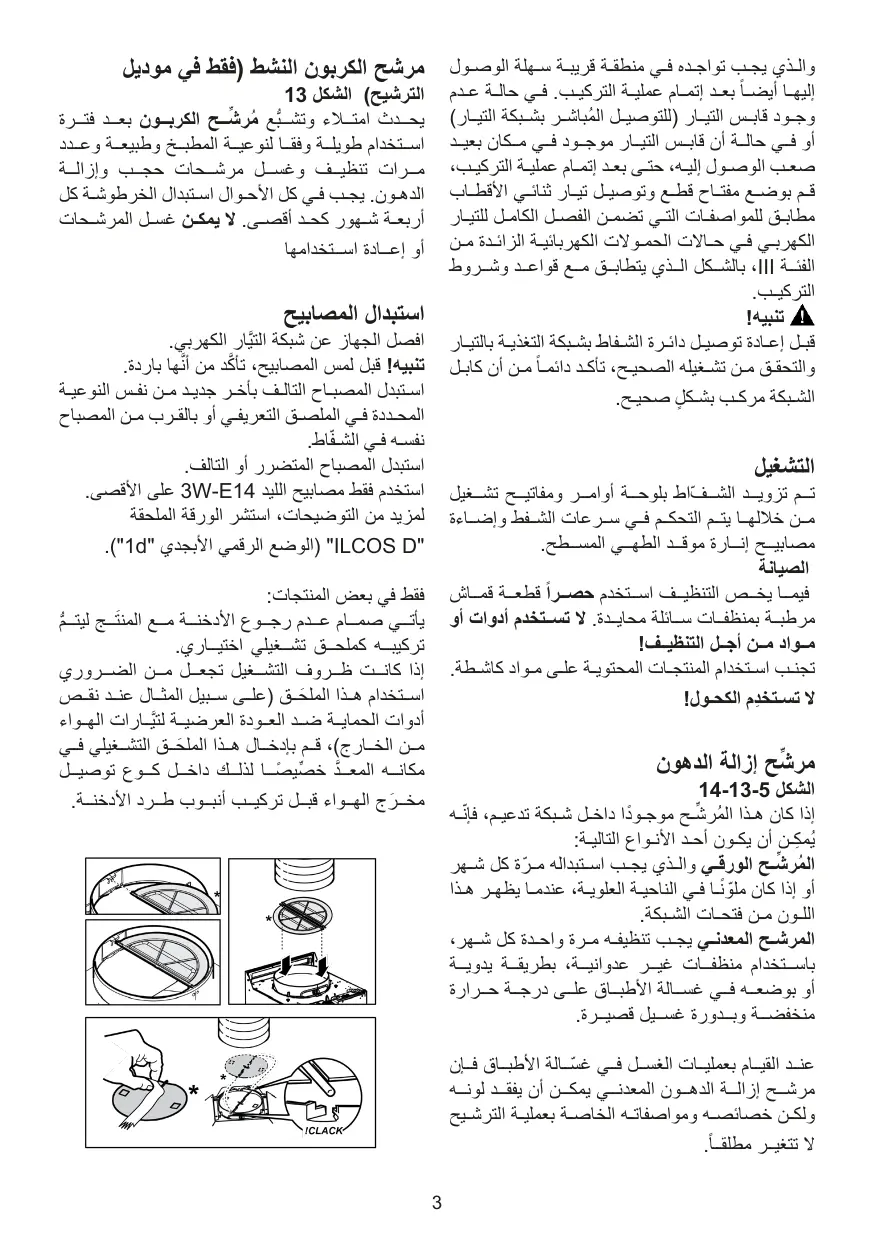 + Ne pas utiliser ou laisser la hotte sans les lampes correctement montées, car un éventuel risque de choc