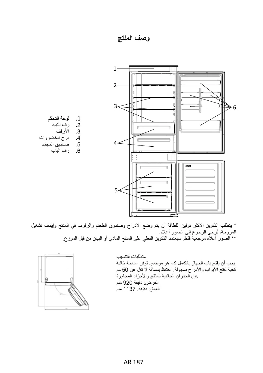REMARQUE : attendez au moins 2/3 heures avant de mettre des aliments dans l'appareil afin de garantir la bonne température à l’intérieur du réfrigérateur.