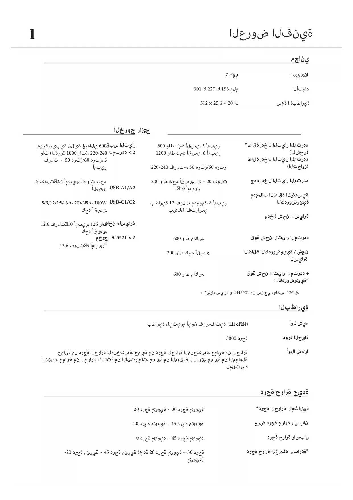7 كجم 301 ك 227 ك 193 ملم 512 × 25,6 × 20 آه مقبس التيار المتردد × 2 USB-A1/A2 USB-C1/C2 شاحن السيارة مخرج DC5521 × 2