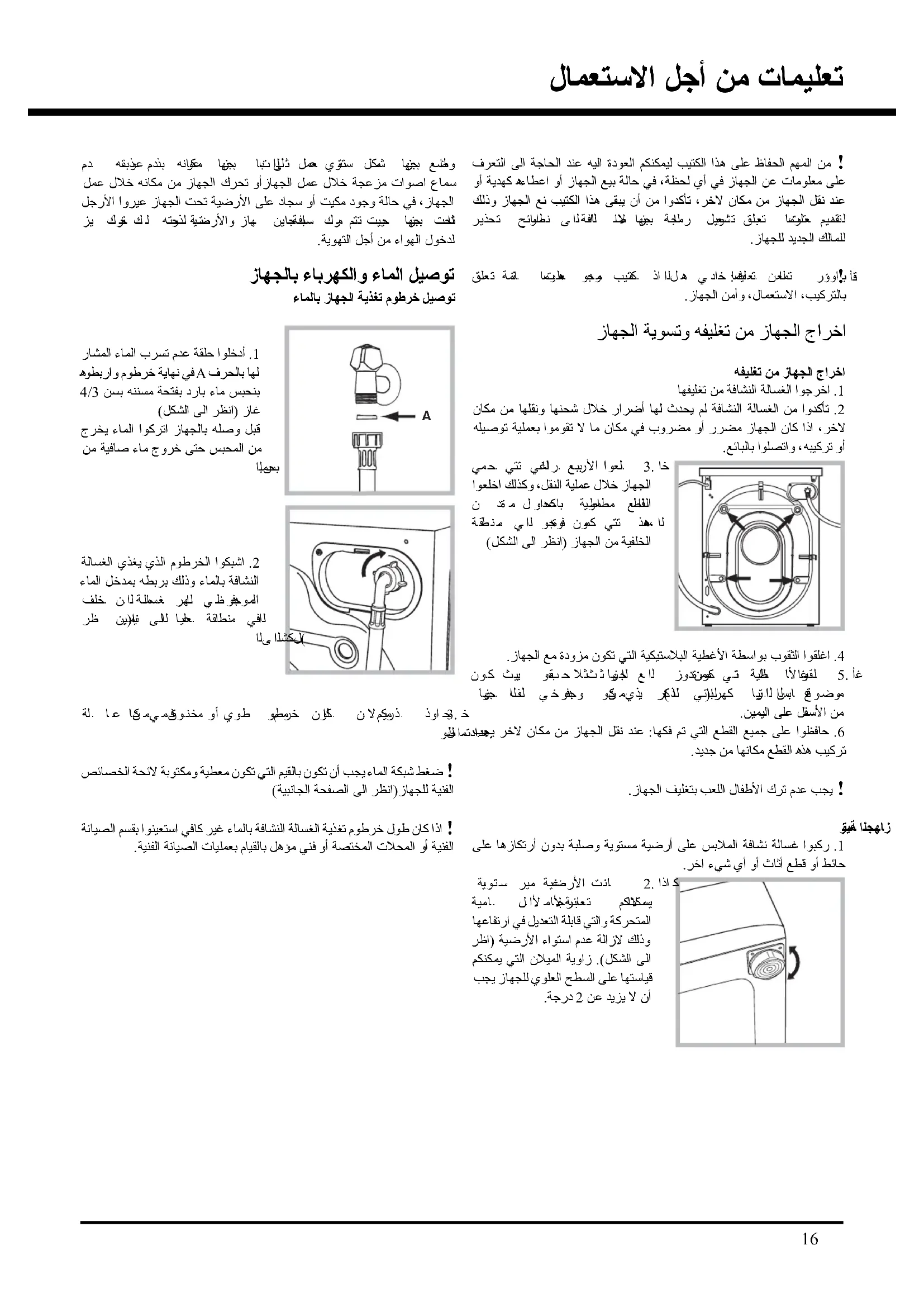 1. رآﺒﻮا ﻏﺴﺎﻟﺔ ﻧﺸﺎﻓﺔ اﻟﻤﻼ ﺑﺲ ﻋﻠﻰ أرﺿﻴﺔ ﻣﺴﺘﻮﻳﺔ وﺻﻠﺒﺔ ﺑﺪون أرﺗﻜﺎزهﺎ ﻋﻠﻰ