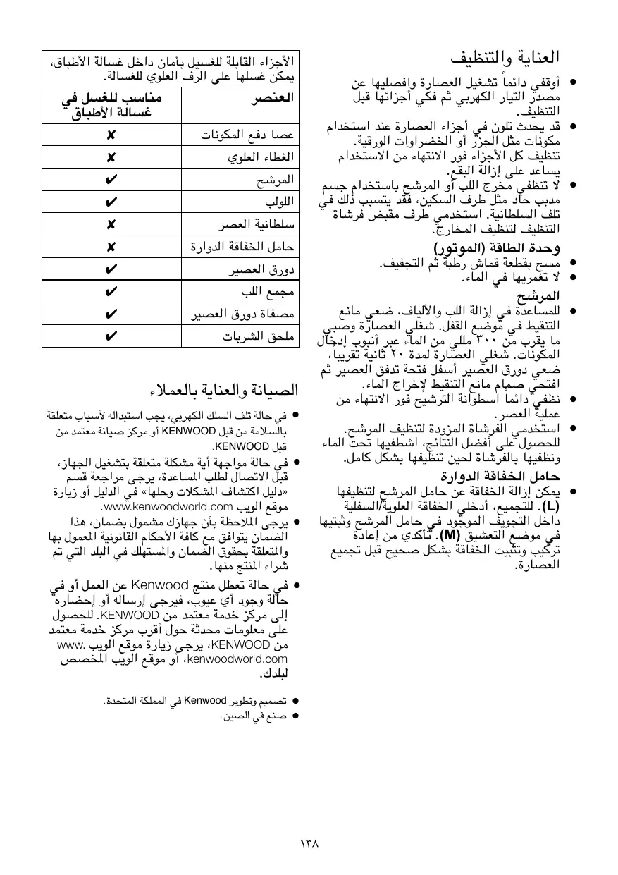 يف حالة تعطل منتج Kenwoodعن العمل أو يف حالة وجود أي عيوب ،فريىج إرساله أو إحضاره إىل مركز خدمة معمتد من .KENWOODللحصول عىل معلومات حمدثة حول أقرب مركز خدمة معمتد من ،KENWOODيرىج زيارة موقع الويب www. ،kenwoodworld.comأو موقع الويب املخصص لبلدك. .…b∫∑L∞« WJKLL∞« w≠ Kenwood d¥uD¢Ë rOLB¢ .sOB∞« w≠ lMÅ