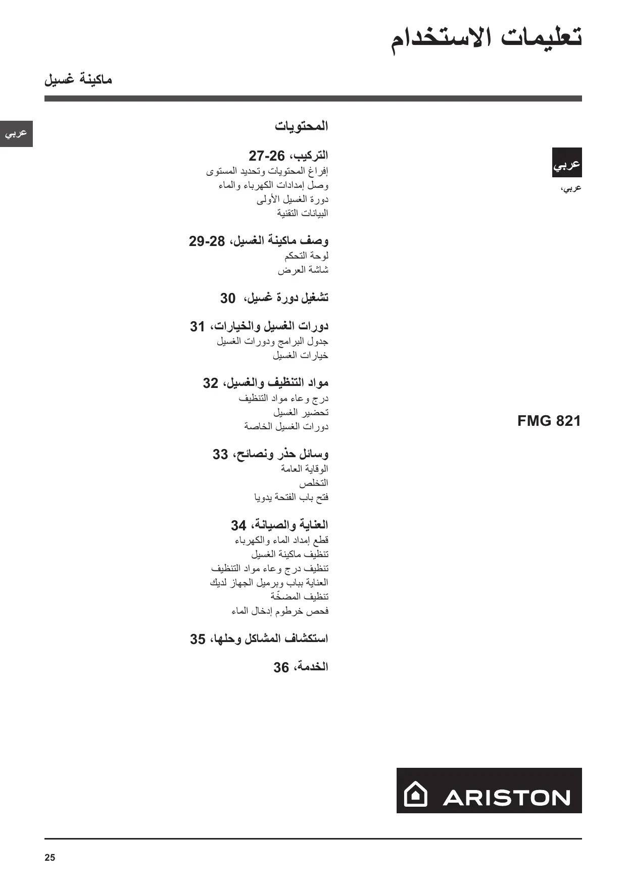 ابحث عن دليل الجهاز مجاناً FMG 821S MA HOTPOINT بصيغة PDF.