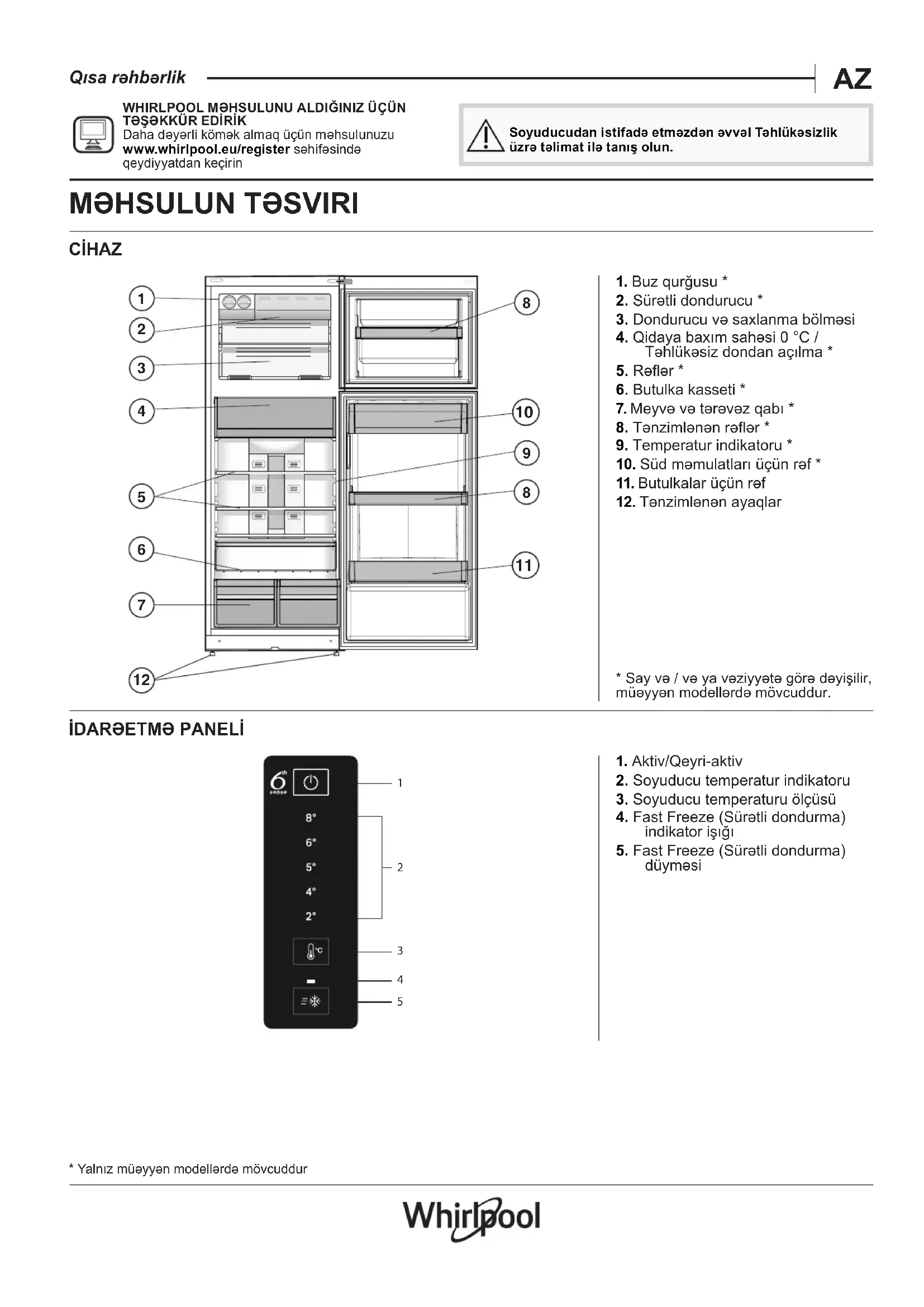 Daha dəyərli kömək almaq üçün məhsulunuzu www .whirlpool . eu/ register səhifəsində qeydiyyatdan keçirin Soyuducudan istifadə etməzdən əvvəl Təhlükəsizlik üzrə təlimat ilə tanış olun.