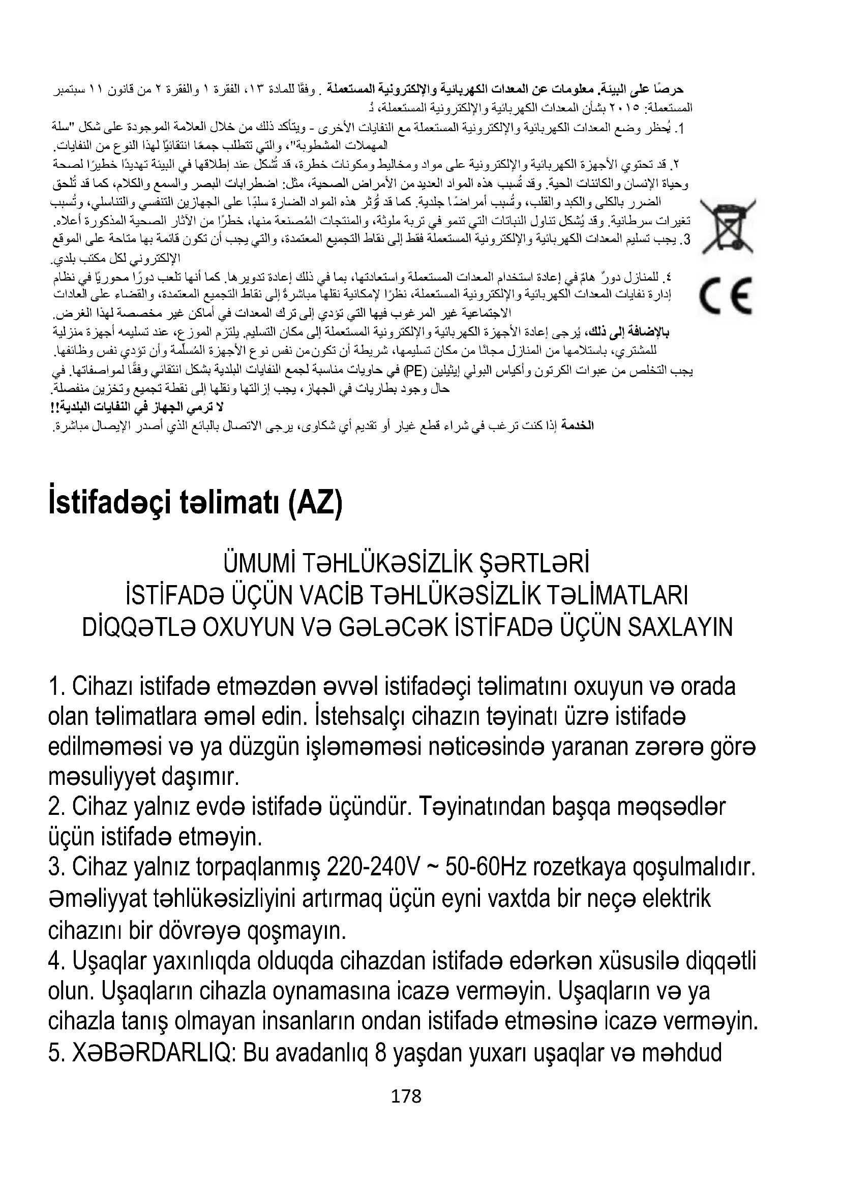 5. XƏBƏRDARLIQ: Bu avadanlıq 8 yaşdan yuxarı uşaqlar və məhdud179