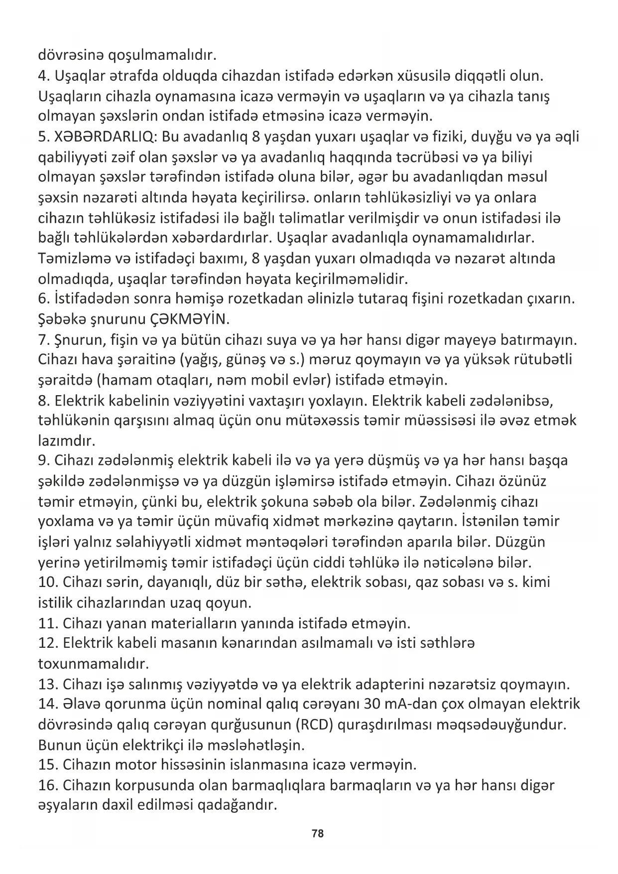 4. Uşaqlar ətrafda olduqda cihazdan istifadə edərkən xüsusilə diqqətli olun.