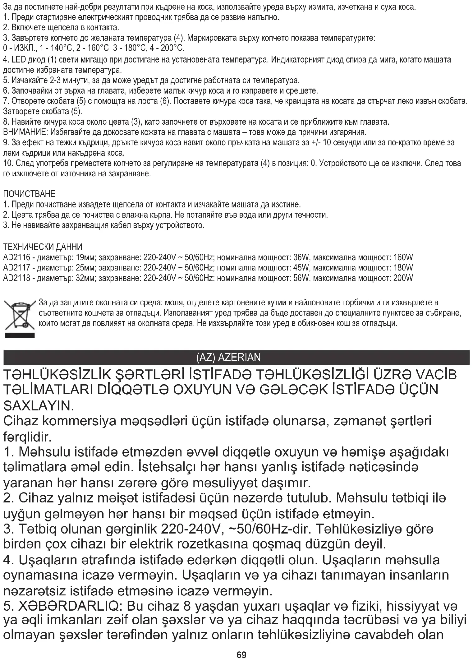 AD 2118 - Saç buran ADLER - Pulsuz istifadəçi təlimatı