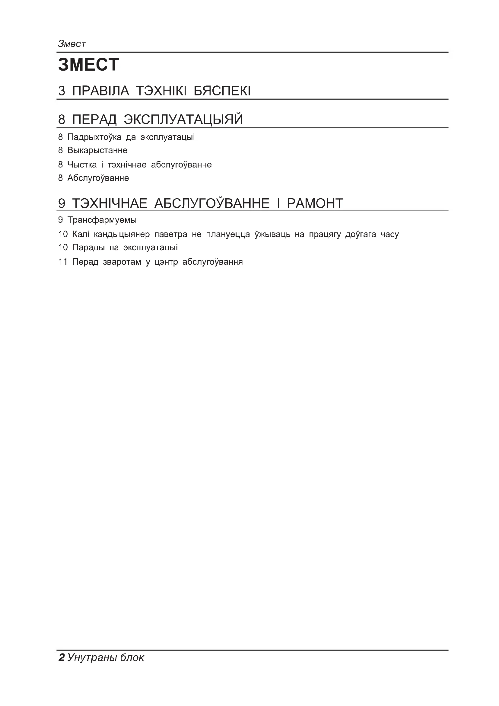 - Не дакранайцеся холадагенту трубы і вадаправоднай трубы ці ўнутраных дэталяў у той час як прылада працуе або адразу ж пасля аперацыі. - Гэта можа выклікаць апёкі ці абмаражэнні.Перад эксплуатацыяй 8 Унутраны блок Для рамонту і тэхнічнага абслугоўвання звярніцеся да аўтарызаванага спецыяліста па абслугоўванню.