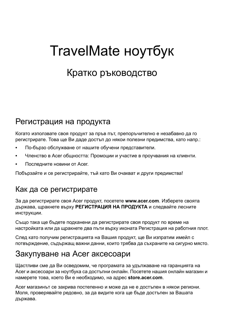 Изтеглете инструкциите за вашия Лаптоп в PDF формат безплатно! Намерете ръководството си TRAVELMATE P643-V - ACER и вземете отново електронното си устройство в ръце. На тази страница са публикувани всички документи, необходими за използването на вашето устройство. TRAVELMATE P643-V на марката ACER.