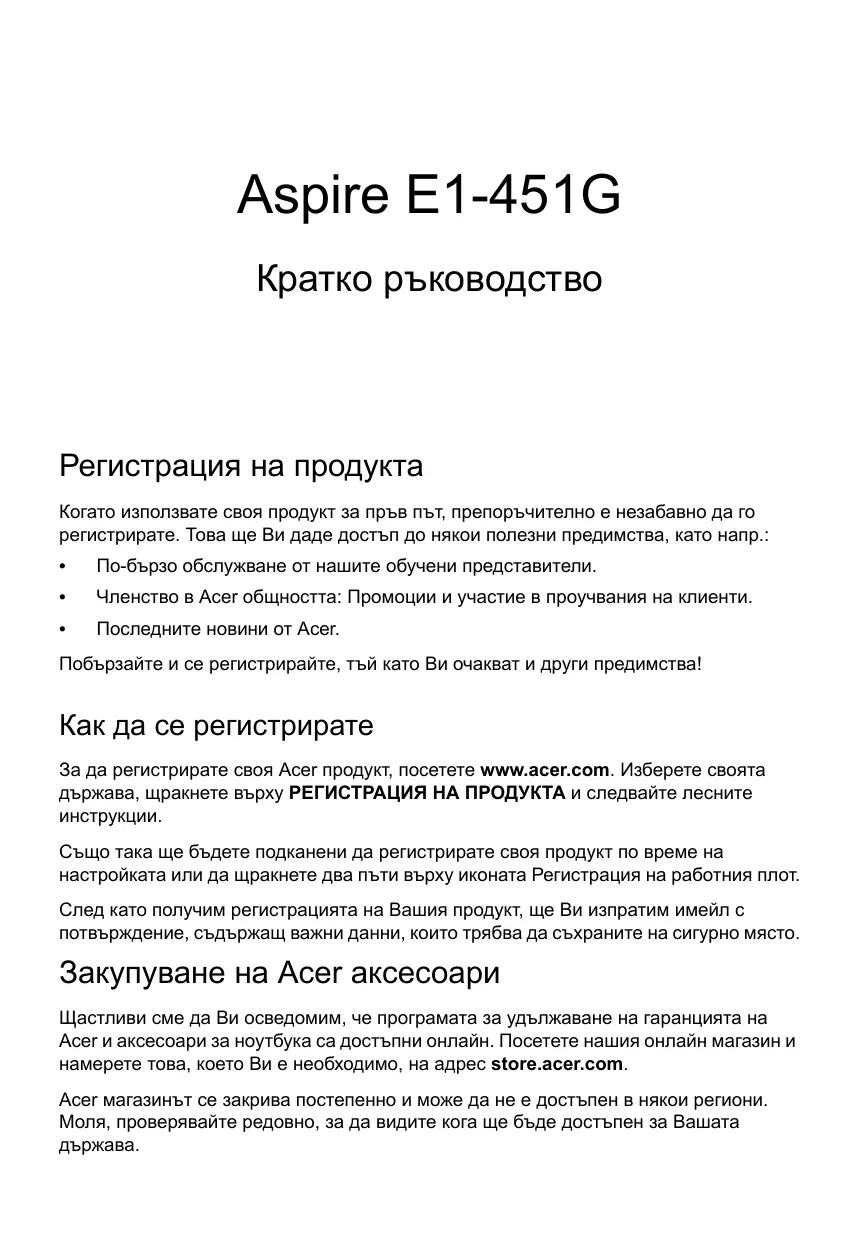 ASPIRE E1-451G - Лаптоп ACER - Notice d'utilisation et mode d'emploi gratuit