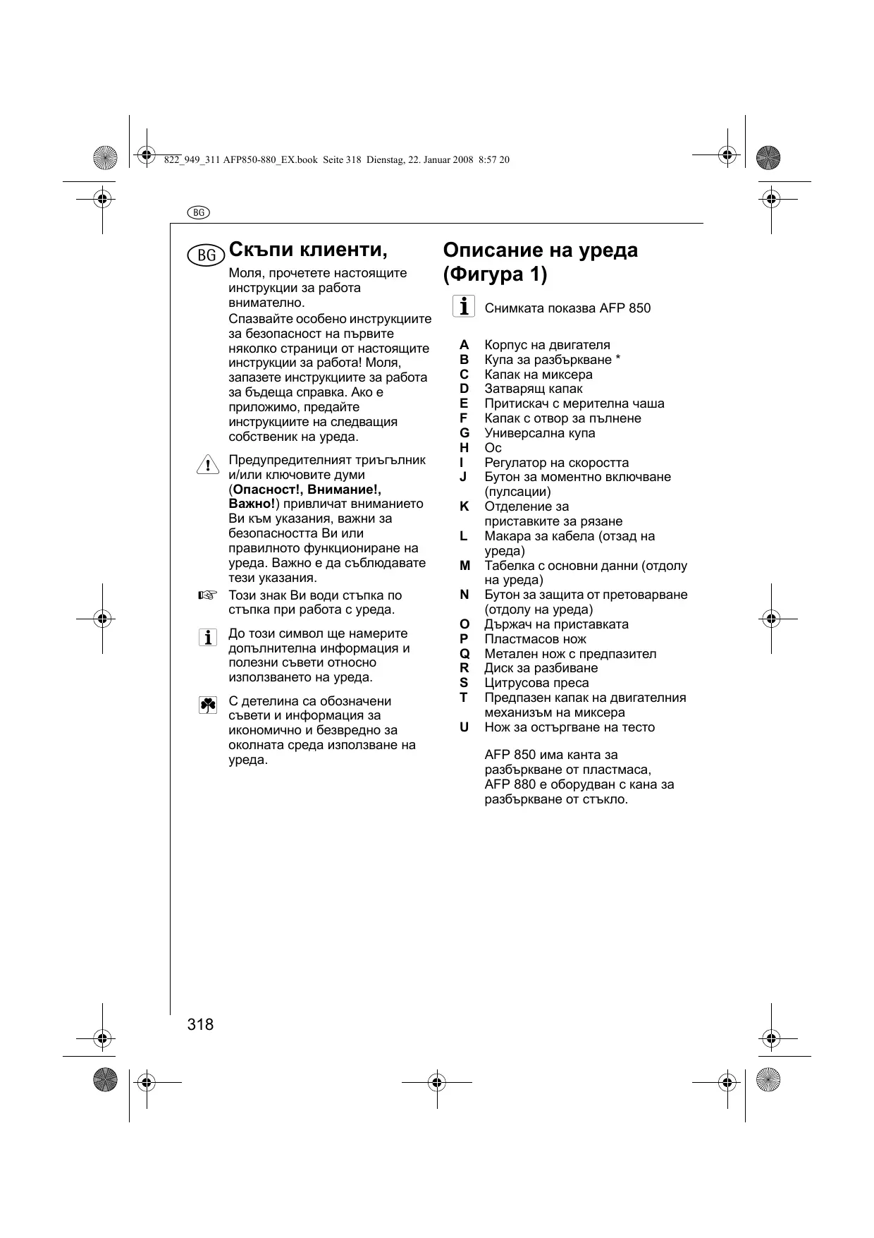 РЪКОВОДСТВО ЗА ПОТРЕБИТЕЛЯ AFP850 AEG-ELECTROLUX