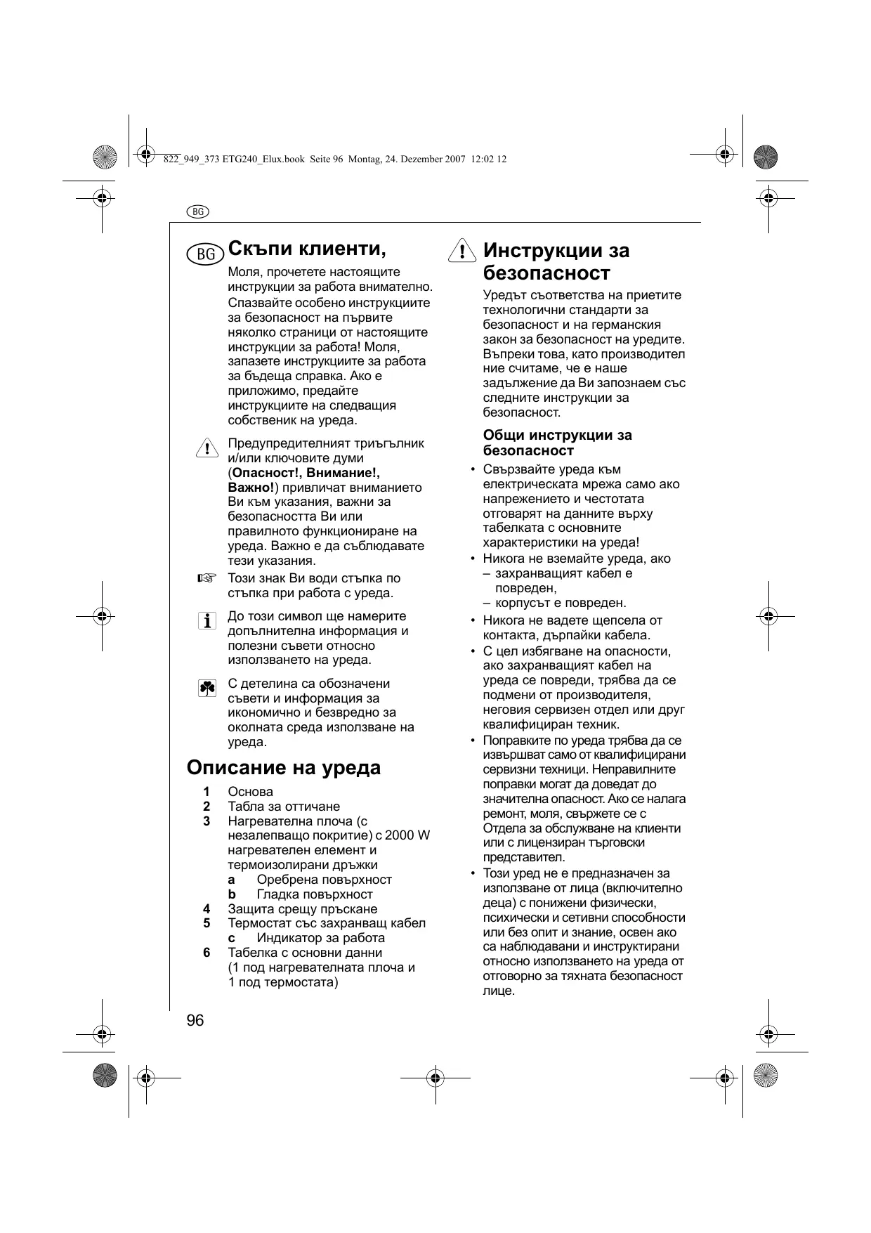 - ЕМС Директива 89/336/EEC с изменение 92/31/EEC и 93/68/EEC 822_949_373 ETG240_Elux.book Seite 101 Montag, 24. Dezember 2007 12:02 12