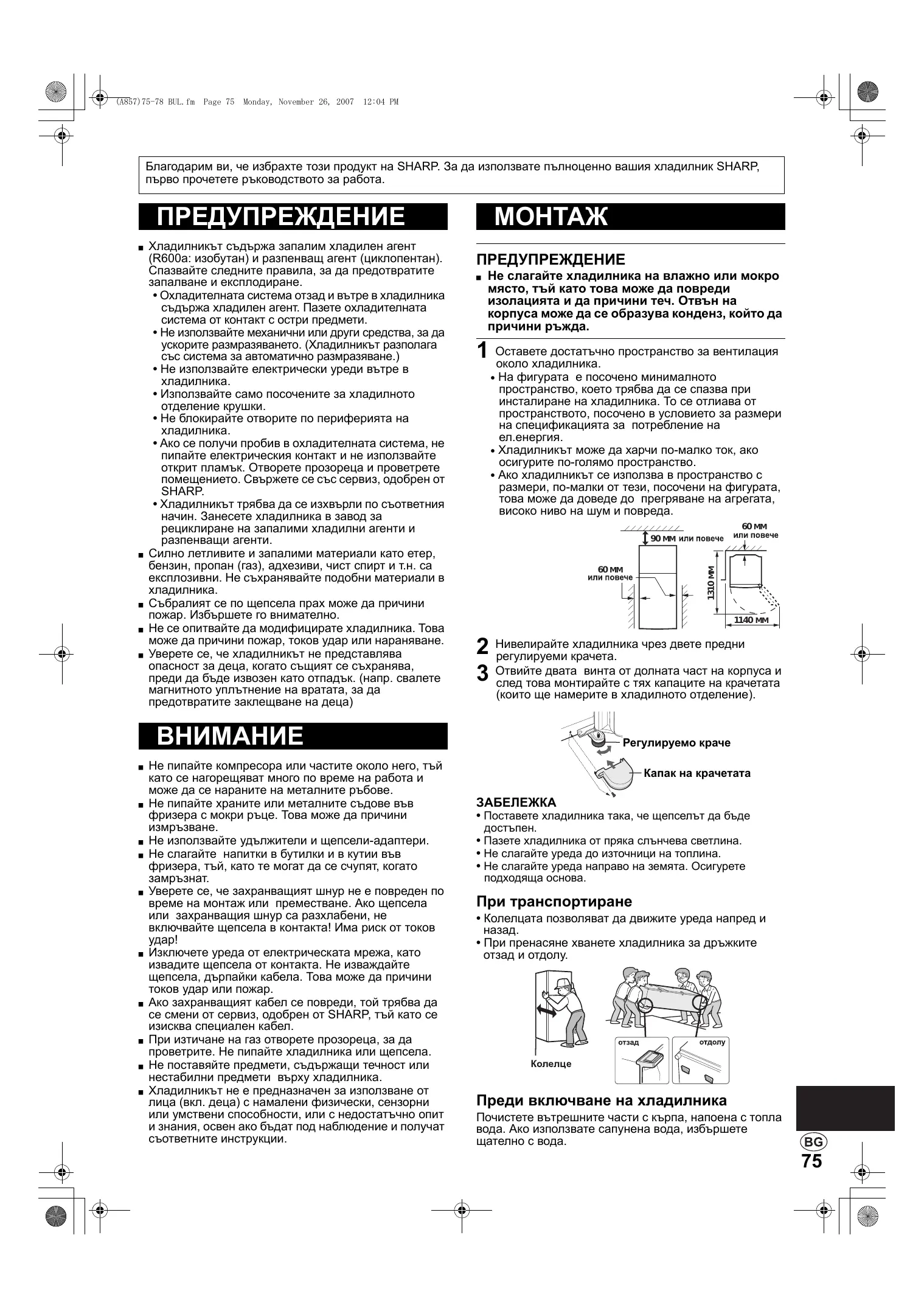 Téléchargez la notice de votre хладилник au format PDF gratuitement ! Retrouvez votre notice SJ-T440R - SHARP et reprennez votre appareil électronique en main. Sur cette page sont publiés tous les documents nécessaires à l'utilisation de votre appareil SJ-T440R de la marque SHARP.
