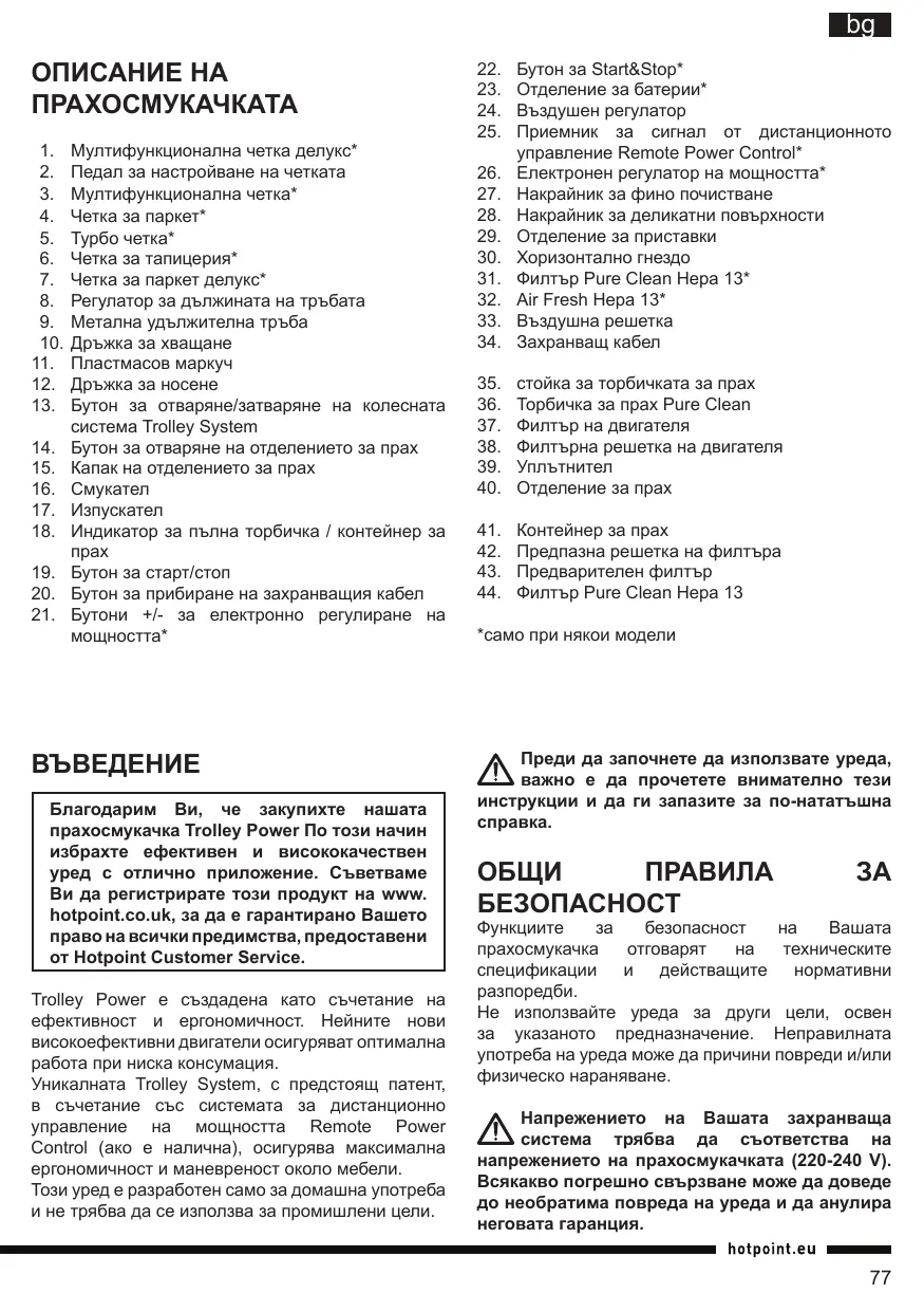 SL D10 BDB - Прахосмукачка HOTPOINT - Безплатно ръководство за потребителя