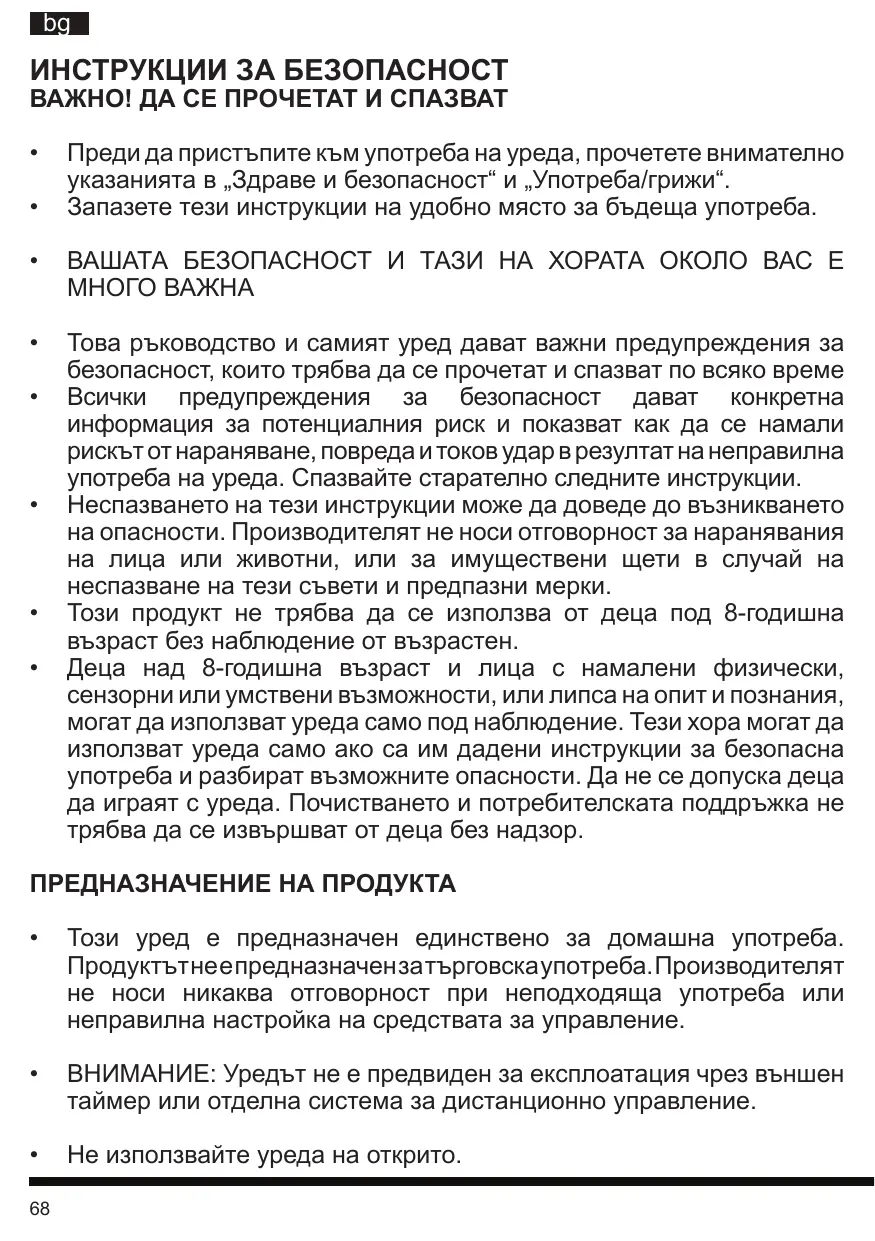 Cet appareil est conçu uniquement pour un usage domestique. Il n’est pas prévu pour un usage commercial. Le fabricant décline toute responsabilité en cas d’utilisation inappropriée ou de mauvais réglage des commandes.