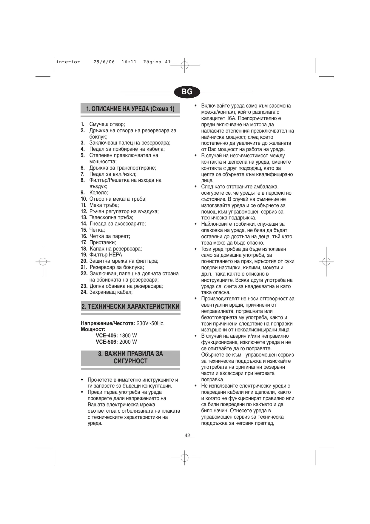 interior 29/6/06 16:11 Página 42 поправка и калибриране. Кабелът на този уред трябва да бъде сменен само в сервиз за техническа поддръжка.
