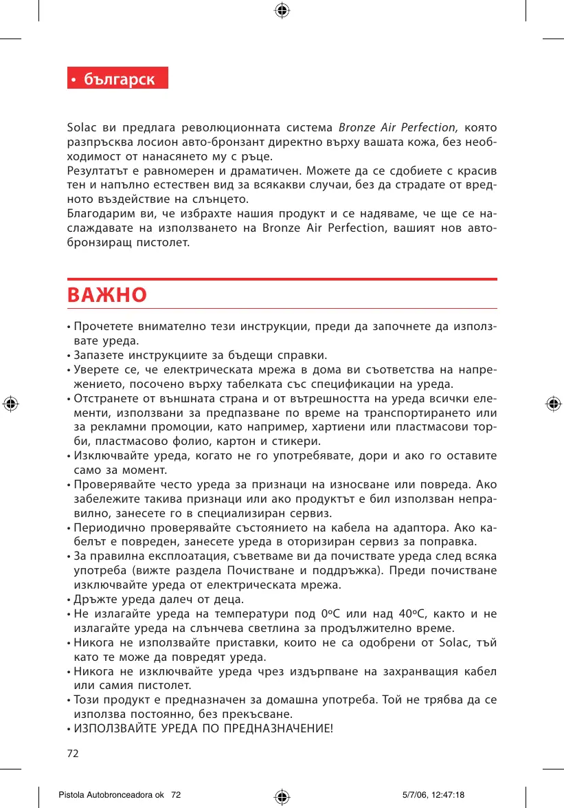 РЪКОВОДСТВО ЗА ПОТРЕБИТЕЛЯ BE7855 SOLAC