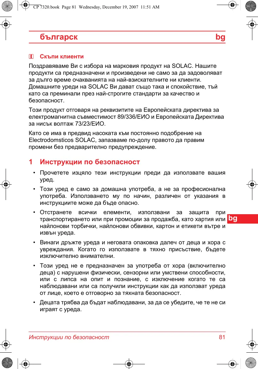 РЪКОВОДСТВО ЗА ПОТРЕБИТЕЛЯ CP7320 SOLAC