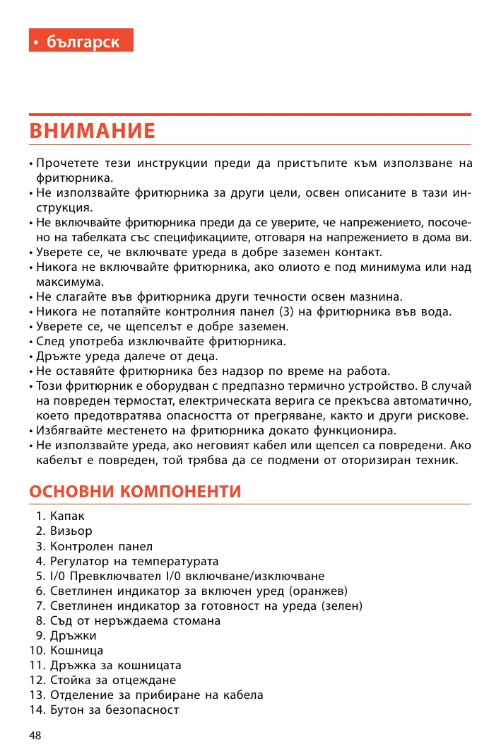 - Прочетете тези инструкции преди да пристъпите към използване на фритюрника.