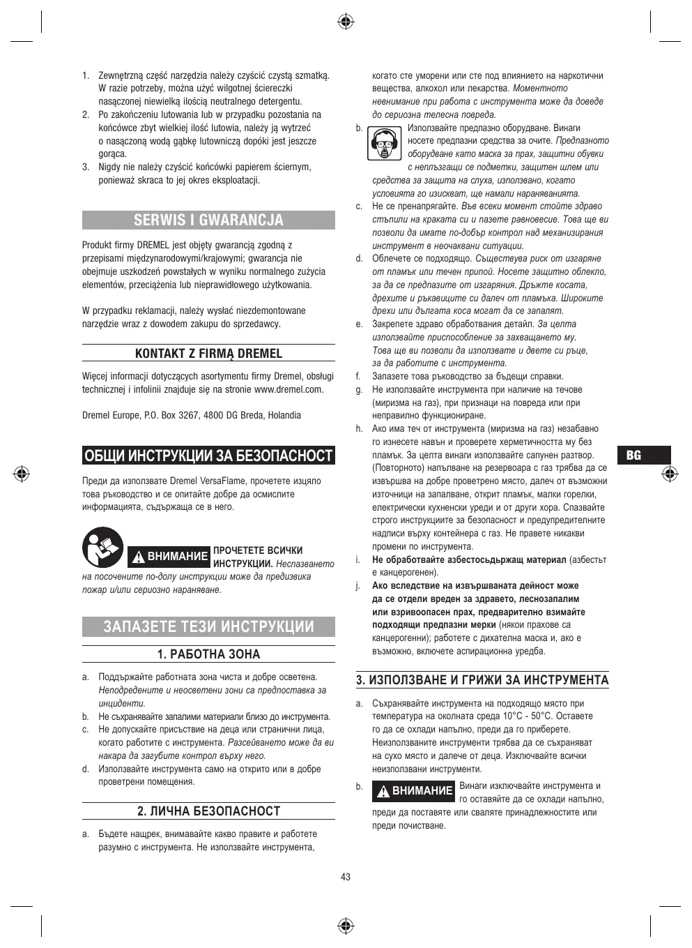ISTRUZIONI GENERALI PER LA SICUREZZA Prima di utilizzare il Dremel VersaFlame, leggere e comprendere tutto il manuale.