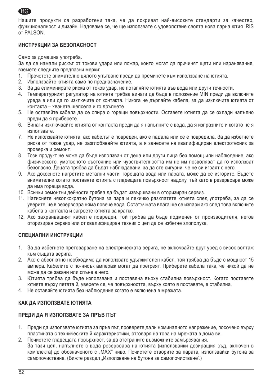 IRIS - ютия PALSON - Безплатно ръководство за потребителя