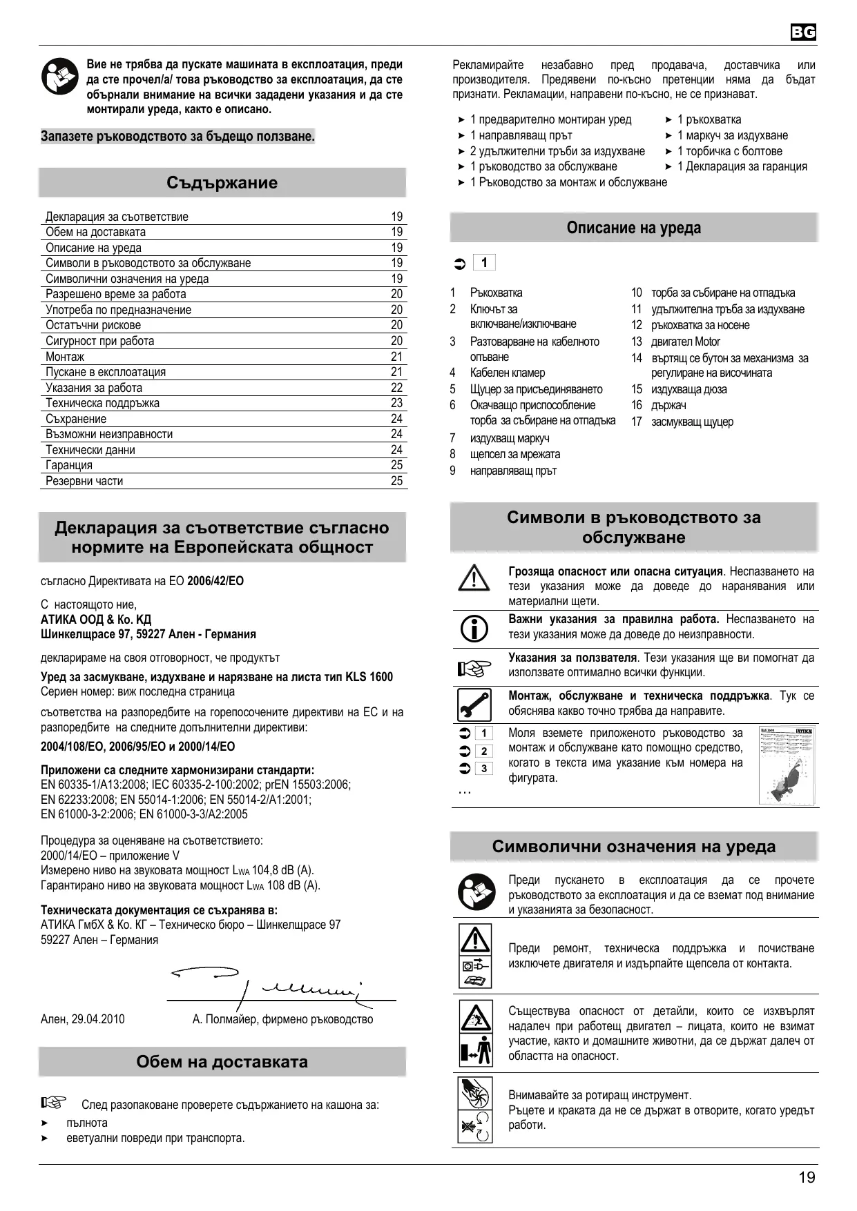 KLS 1600 - ATIKA - Безплатно ръководство за потребителя