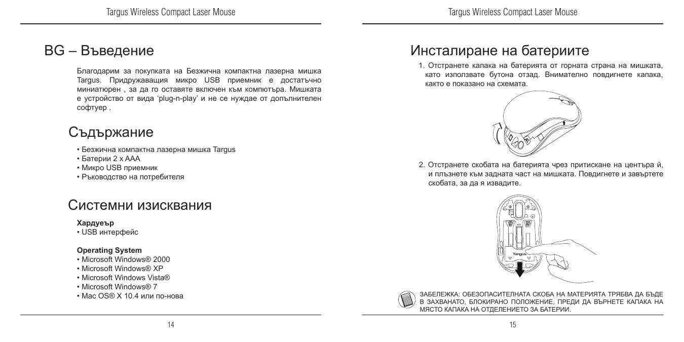 Téléchargez la notice de votre Безжична мишка au format PDF gratuitement ! Retrouvez votre notice WIRELESS COMPACT LASER MOUSE - TARGUS et reprennez votre appareil électronique en main. Sur cette page sont publiés tous les documents nécessaires à l'utilisation de votre appareil WIRELESS COMPACT LASER MOUSE de la marque TARGUS.